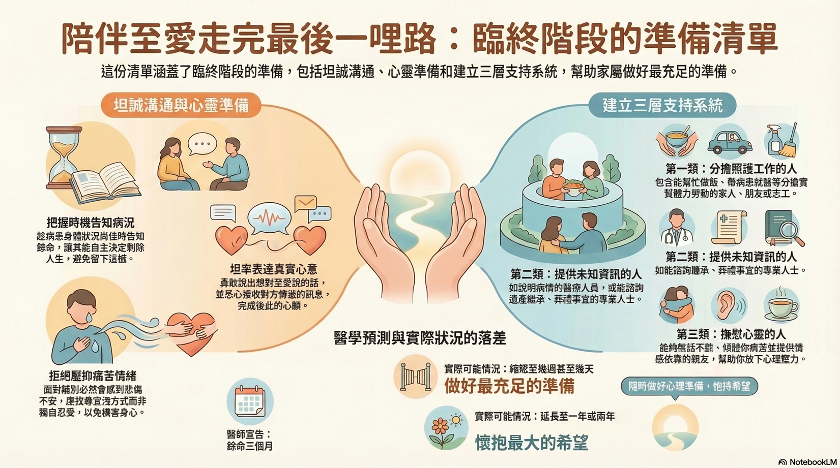 一直以來我對死亡的議題很感興趣,所以當拿到 《如果死期將至:最後的道別不是再見,而是另一個世界見》這本書時,就很快的把它看完。這次試著將自己想筆記的那幾頁拍照後,由 AI 生成資訊圖表。